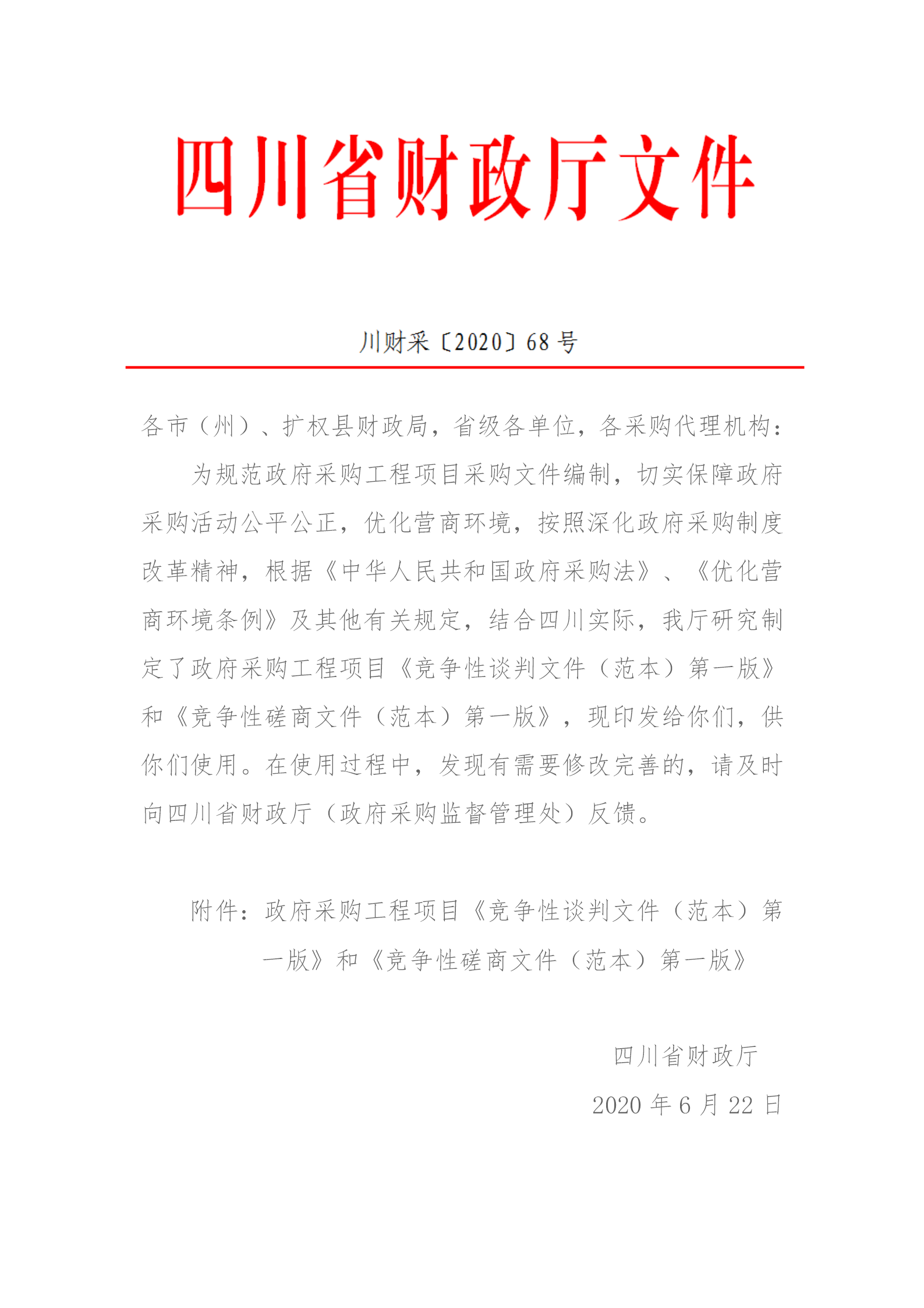四川省財(cái)政廳關(guān)于印發(fā)政府采購(gòu)工程項(xiàng)目采購(gòu)文件范本的通知