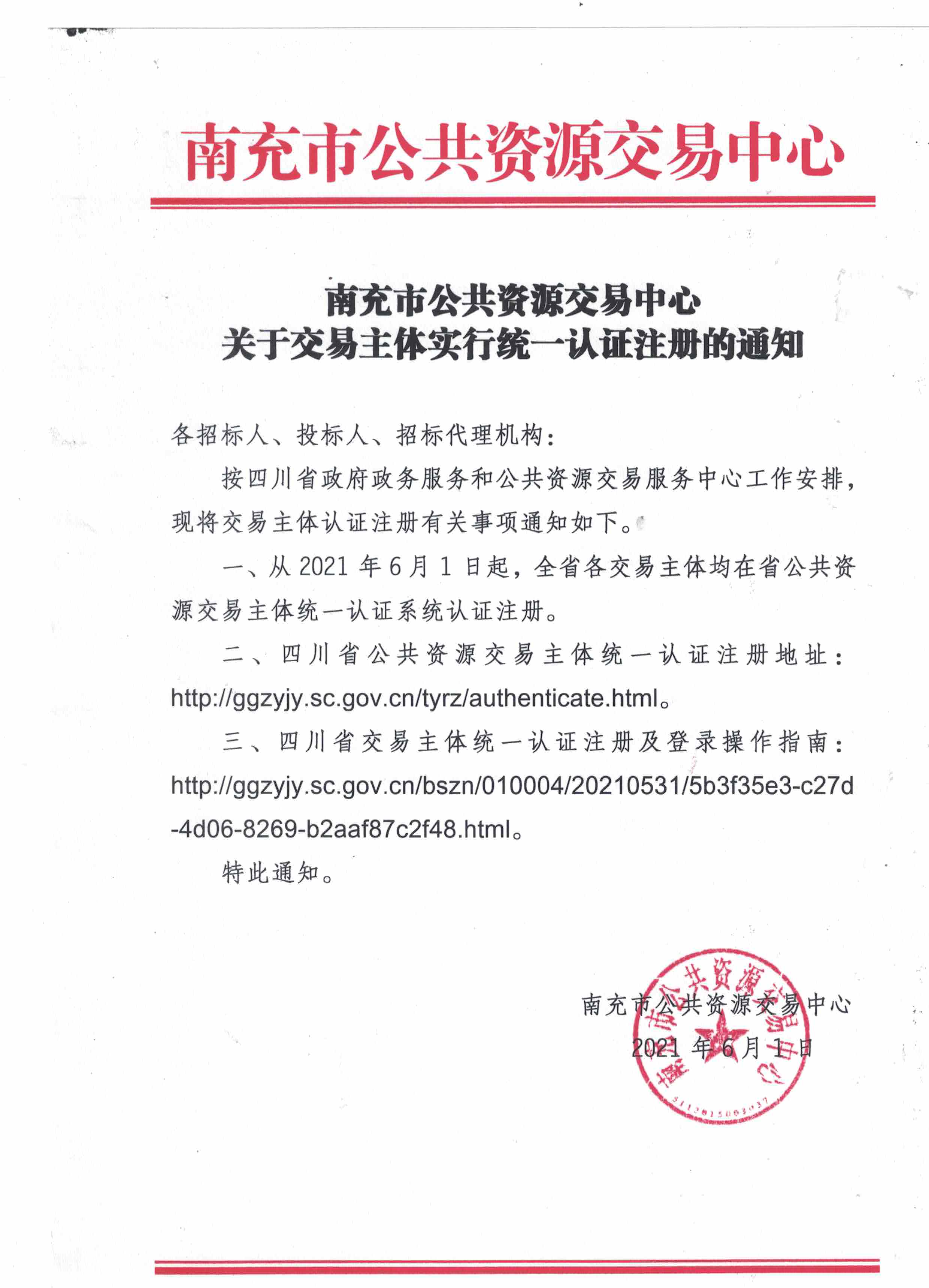 按四川省政府政務(wù)服務(wù)和公共資源交易服務(wù)中心工作安排,現(xiàn)將交易主體認(rèn)證注冊(cè)有關(guān)事項(xiàng)通知如下。