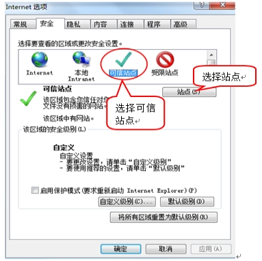 3.2、點(diǎn)擊綠色的“受信任的站點(diǎn)”的圖片,會看到如下圖所示的界面: