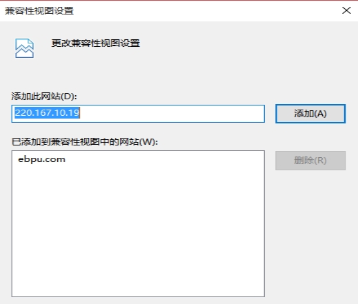 3.4、在“工具”菜單→“兼容性視圖”中添加,系統(tǒng)訪問ip地址:220.167.10.19,然后點(diǎn)擊“添加”按鈕完成添加。
