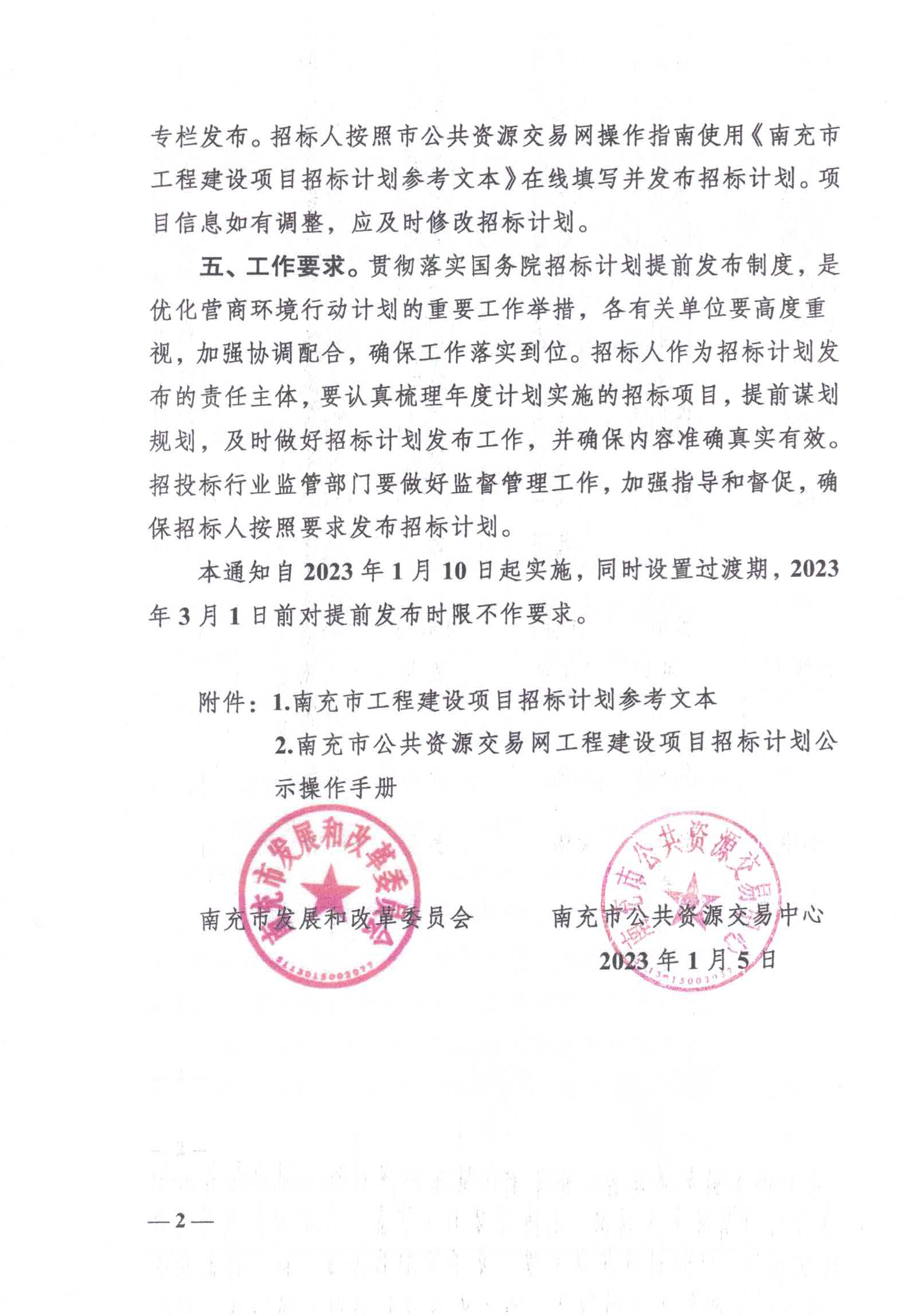 南充市發(fā)展和改革委員會(huì)、南充市公共資源交易中心關(guān)于開(kāi)展工程建設(shè)項(xiàng)目招標(biāo)計(jì)劃提前發(fā)布工作的通知