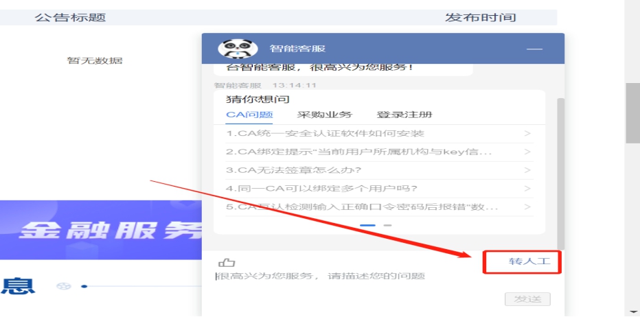 因上線初期,400電話客服電話咨詢量較大,推薦使用在線客服,更能有利于及時解決問題。如遇智能客服無法解答,可點(diǎn)擊“轉(zhuǎn)人工”進(jìn)行在線人工客服解答。詳見下圖: