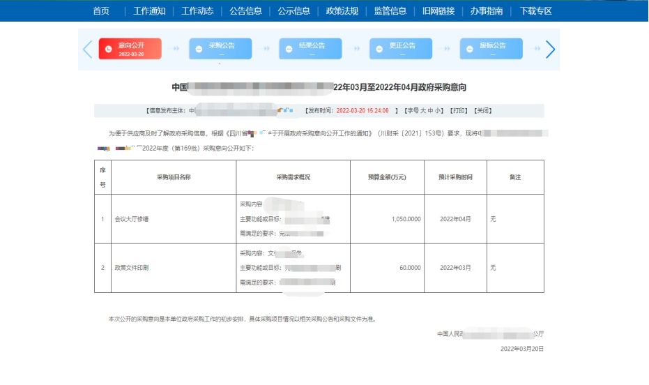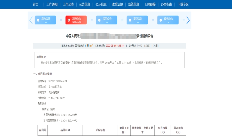 展示項(xiàng)目采購和電子賣場公告信息,點(diǎn)擊對應(yīng)的公告標(biāo)題進(jìn)入查看項(xiàng)目采購各個環(huán)節(jié)的公告信息詳情,展示如下圖所示: