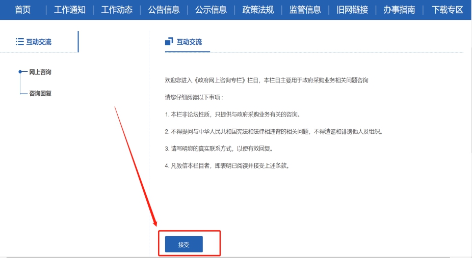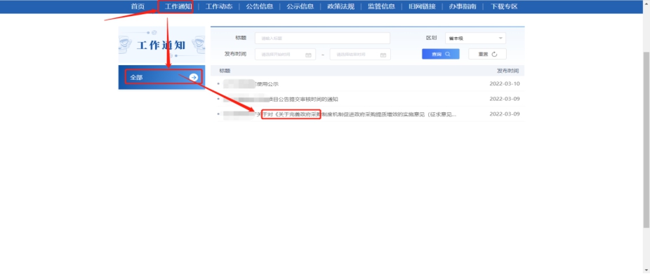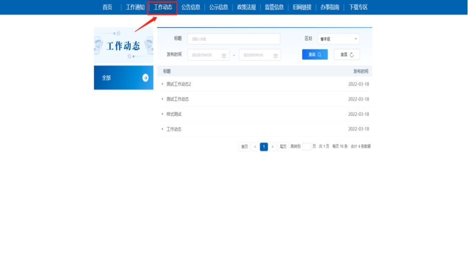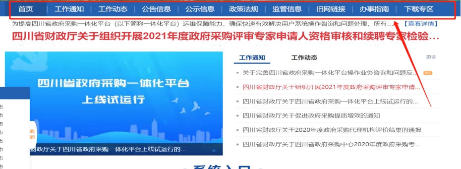 包括:工作通知、工作動態(tài)、采購公告、信息公開、政策法規(guī)、監(jiān)管信息、舊網(wǎng)鏈接、辦事指南和下載專區(qū),如下圖所示: