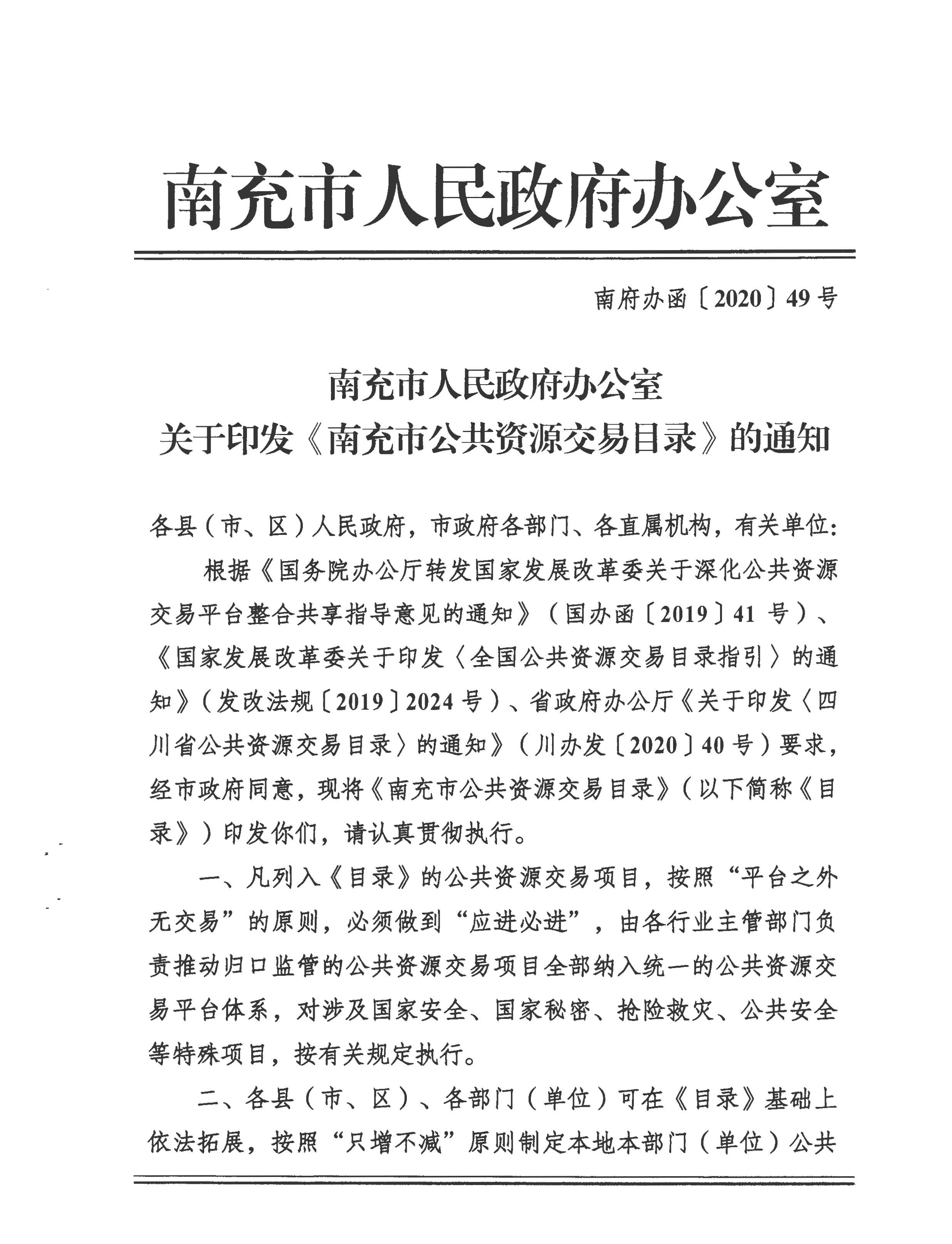 南充市人民政府辦公室關(guān)于印發(fā)《南充市公共資源交易目錄》的通知