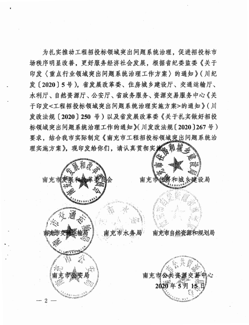 南充市發(fā)展和改革委員會等7部門關(guān)于印發(fā)《南充市工程招投標(biāo)領(lǐng)域突出問題系統(tǒng)治理實施方案》的通知