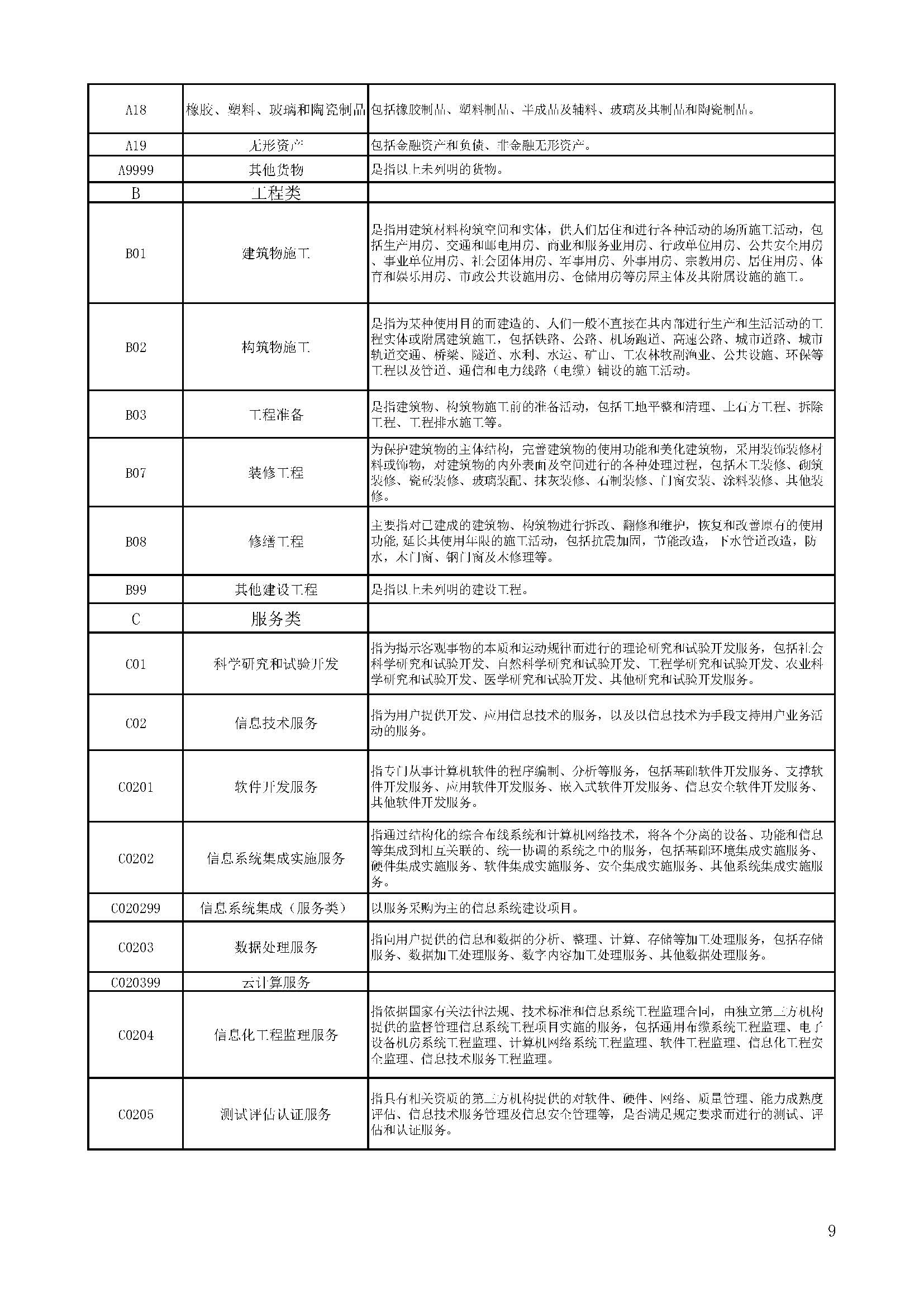 四川省政府采購品目分類目錄